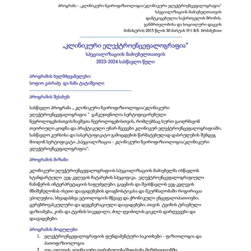 სასწავლო პროგრამა „კლინიკური ნეიროფიზიოლოგია/კლინიკური ელექტროენცეფალოგრაფია“ განკუთვნილია…